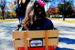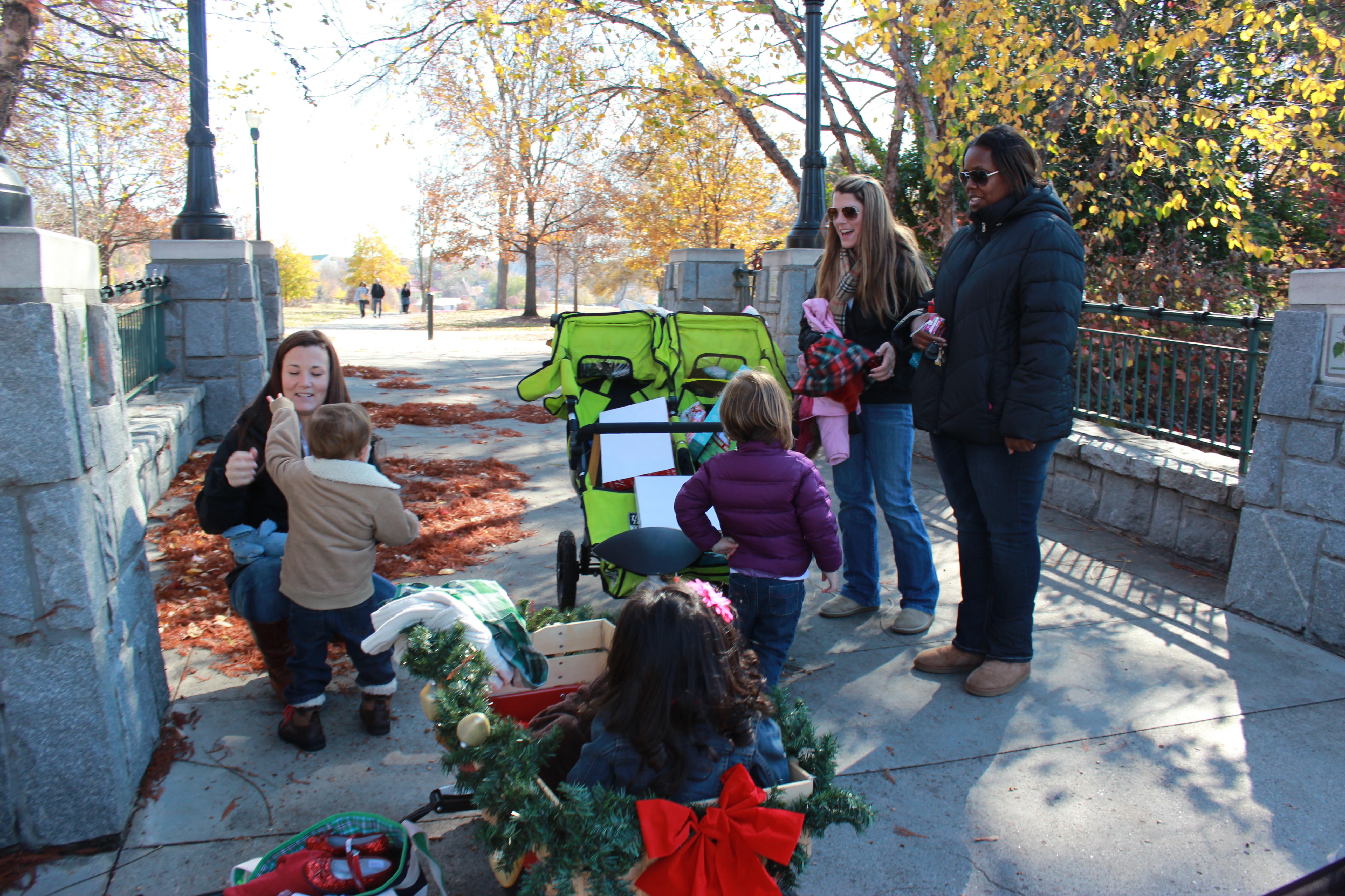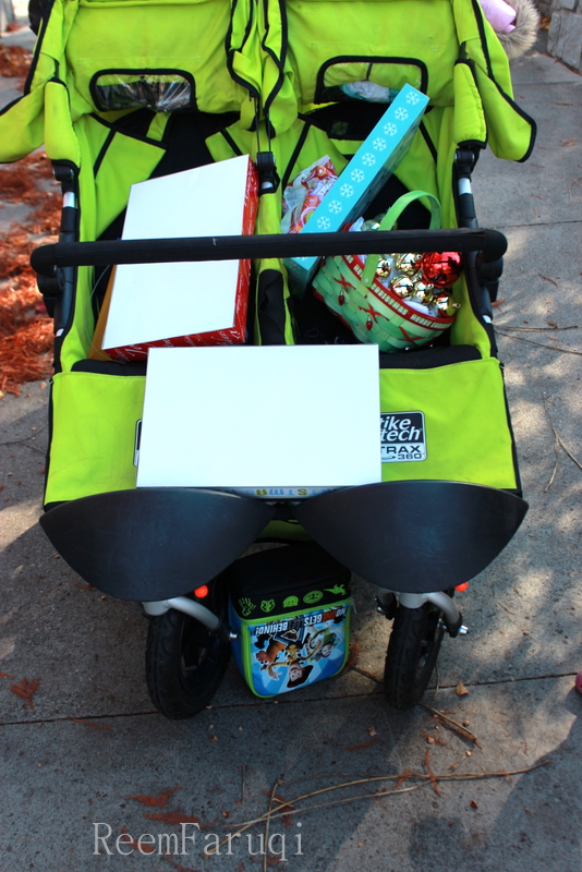 Here’s the strollerful of props and a behind-the-scenes shot: