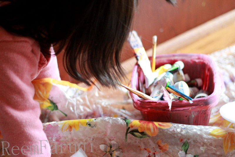 Easier said than done! Z liked using my paint brushes but wanted to touch the paint with her fingers.