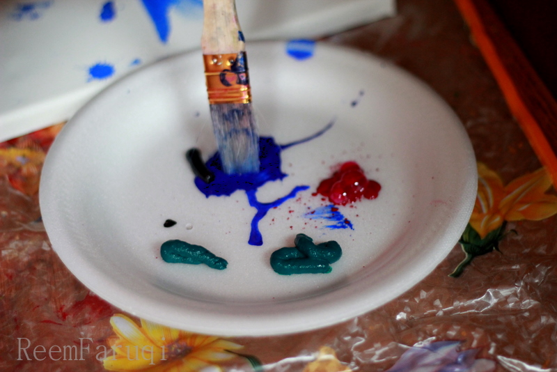 I really wanted to paint today and I had 2 extra canvases in my store room. I let Z participate too and thought she could paint on her canvas while I paint on mine. I’d put on her smock, and each of us would end our session with a beautiful piece of work.