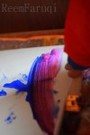 After 5 minutes, Z was done, but I wasn’t! Z then proceeded to STEP on my painting, and walk off the sheet on the floor, and take a few steps around the kitchen. Luckily, everything was cleaned, and I had to stop my painting in the middle. It does have an interesting effect though and if you look carefully, you can see her foot prints!