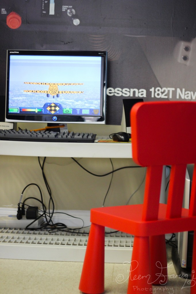 They had a kid-friendly airplane simulation computer game for children. Z liked this too but got distracted by all the other goodies. The speakers naturally played the sound of the airplane’s engine – Z loves the sound of engines!