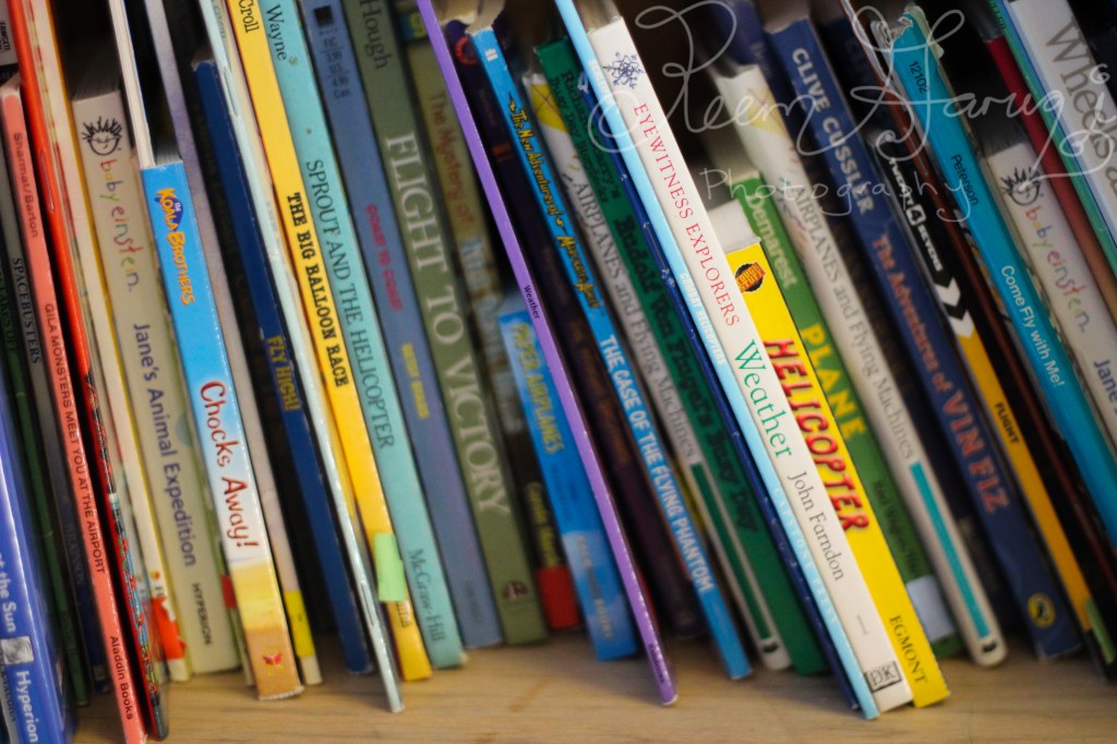 We liked browsing through these airplane books – at the library, I can’t find enough. Lots of tractor books, but not enough airplane books.