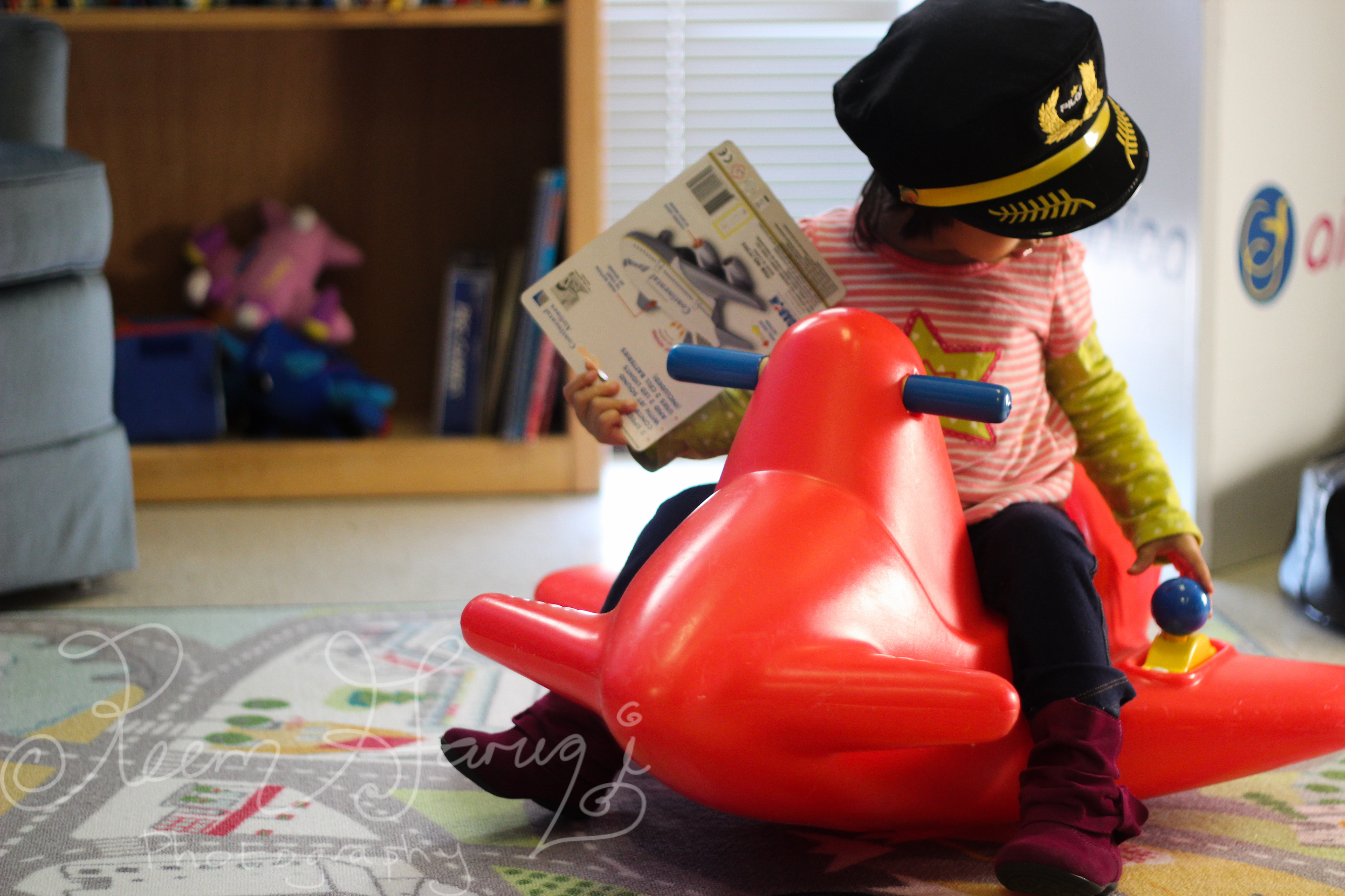 They had a dress-up corner with pilot costumes, goggles, and hats! My father bought her a pilot hat from Europe so we didn’t buy this one here.