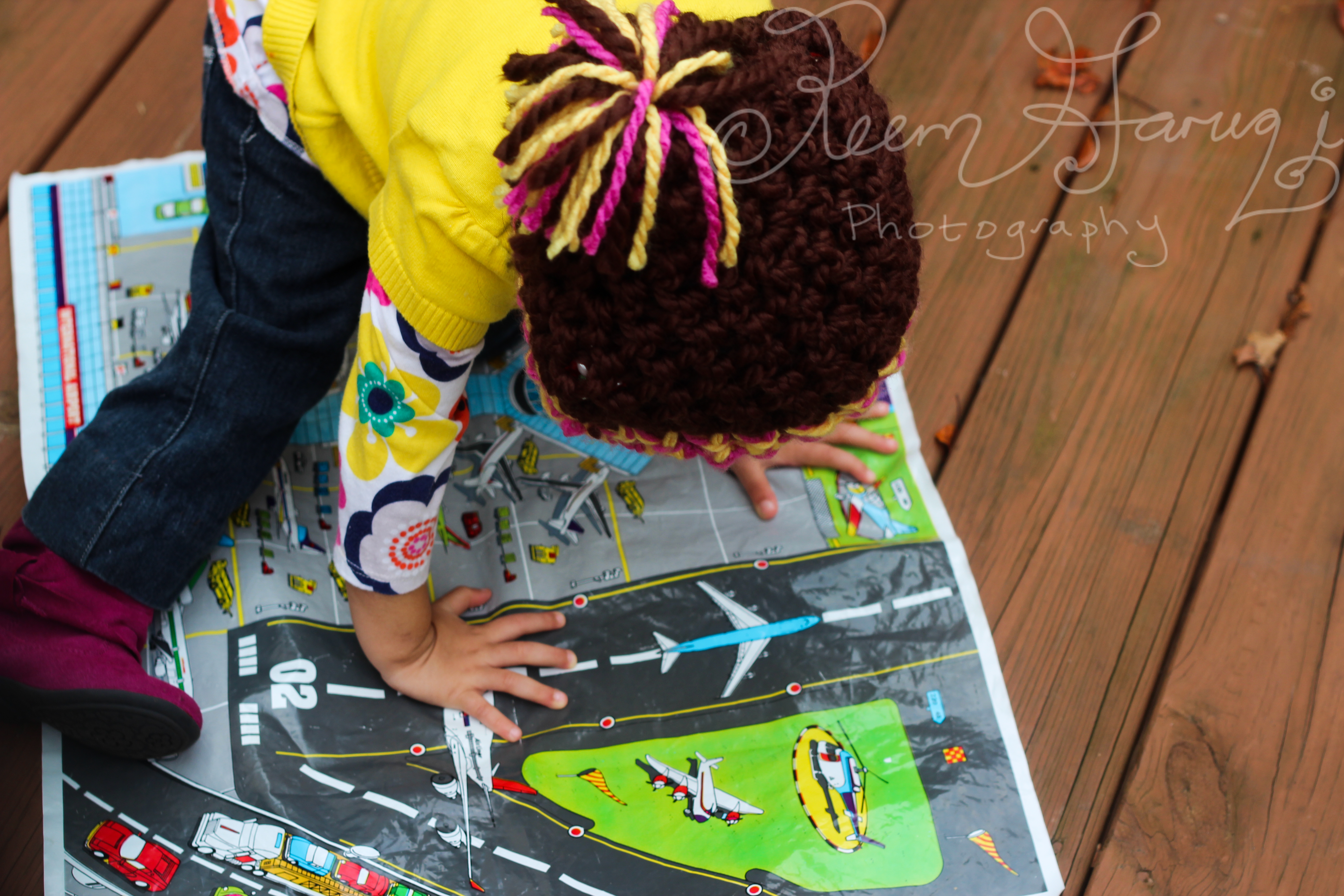 She can now identify propellers, runways, and control towers! This is an airport mat my brother gave her. She loves it!