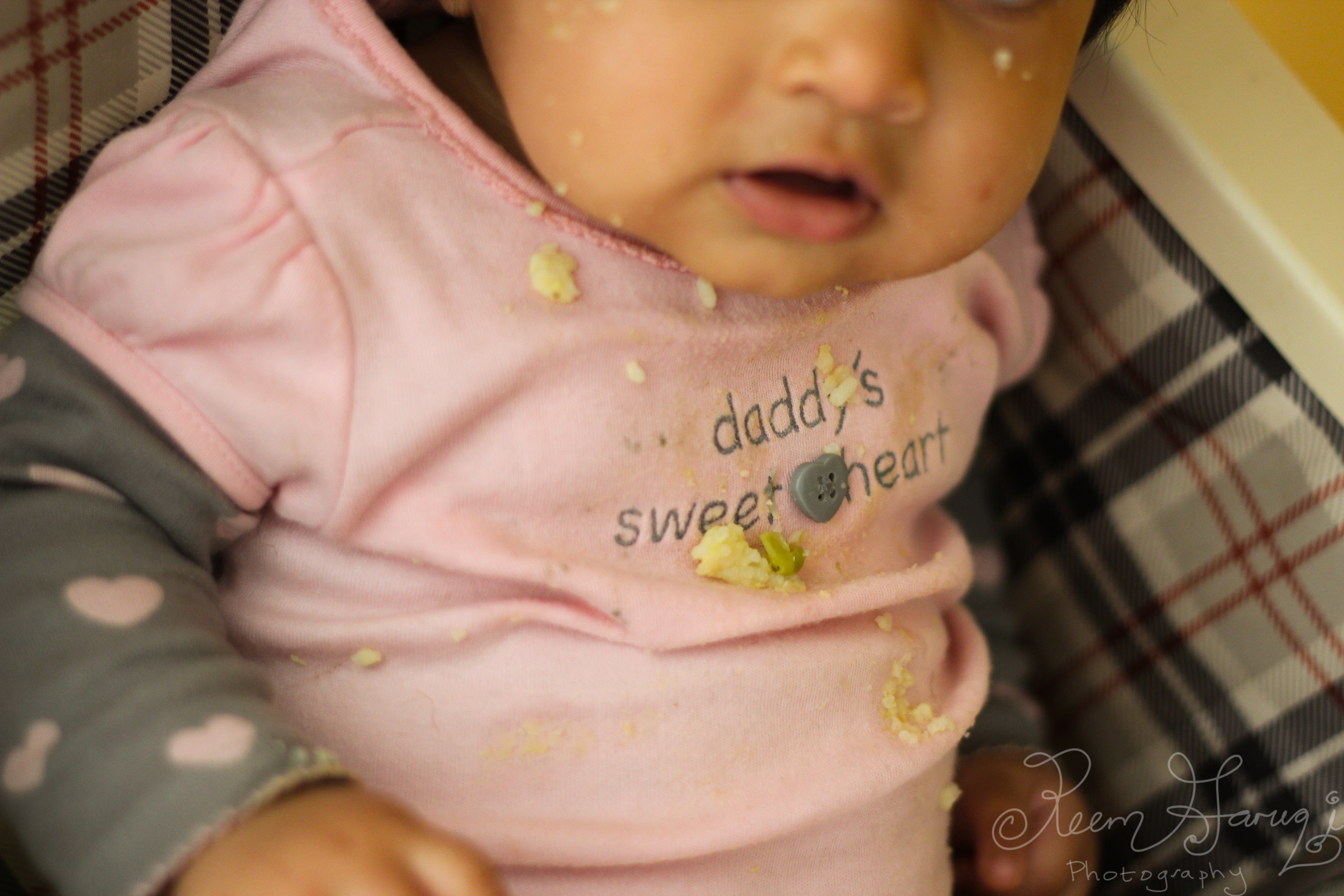 Moments in which baby A is fussy and food splattered.