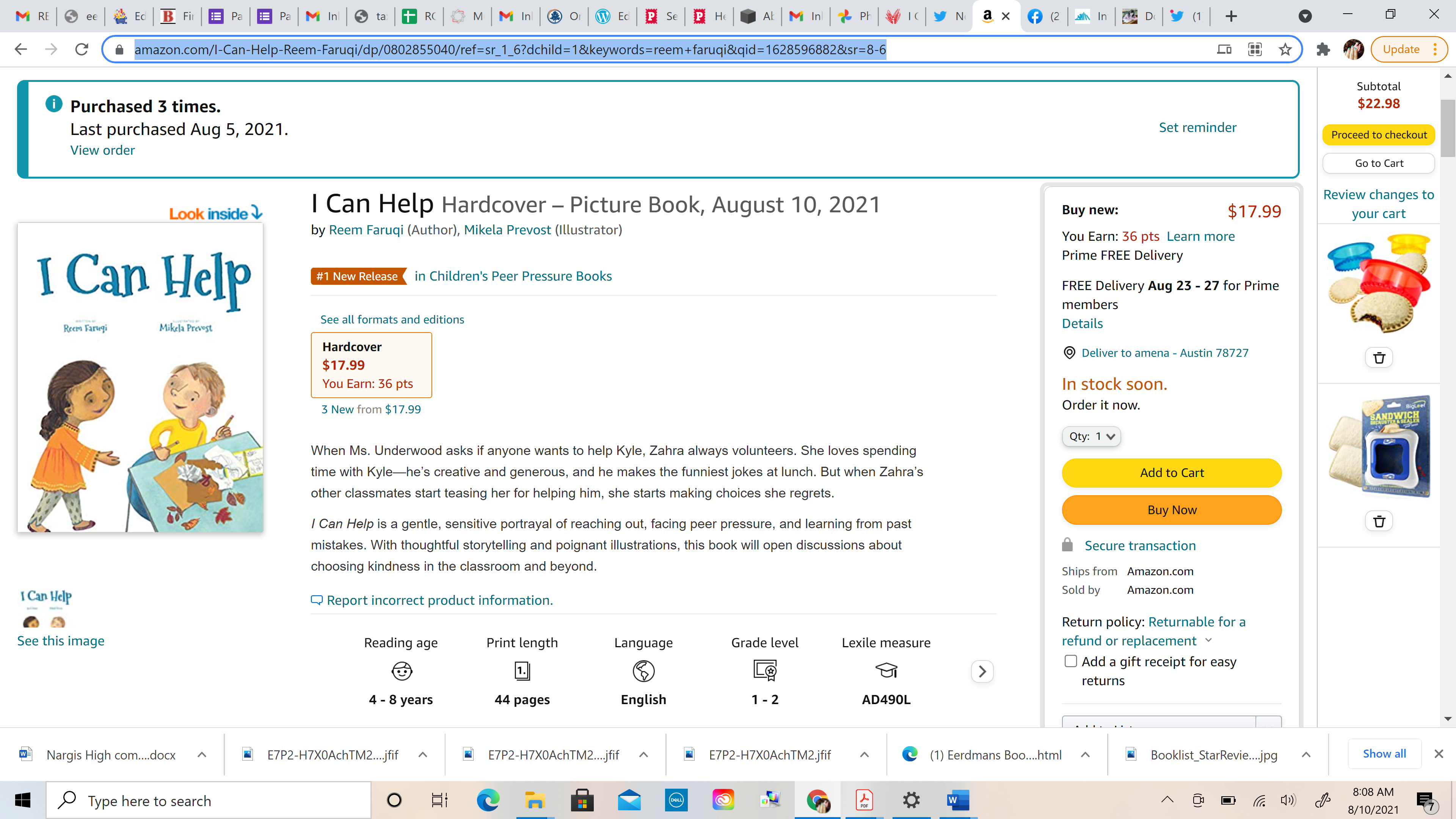 Lastly, thank you Mikela for being so detail oriented. I fell in love with Zahra’s fuzzy eyebrows and baby hairs on her forehead, her colorful Pakistani kurtas, and how you brought her dilemma to life. When I was querying this story, an agent told me it was ‘too quiet’ and asked if I could visualize the illustrations. I disagreed with it being too quiet, and was thrilled when Kathleen Merz (our editor!) made an offer, and that this book has been getting starred reviews. I also could visualize the illustrations, but what you’ve done is phenomenal and you’ve turned this story into a work of art. For that, I can’t thank you enough!