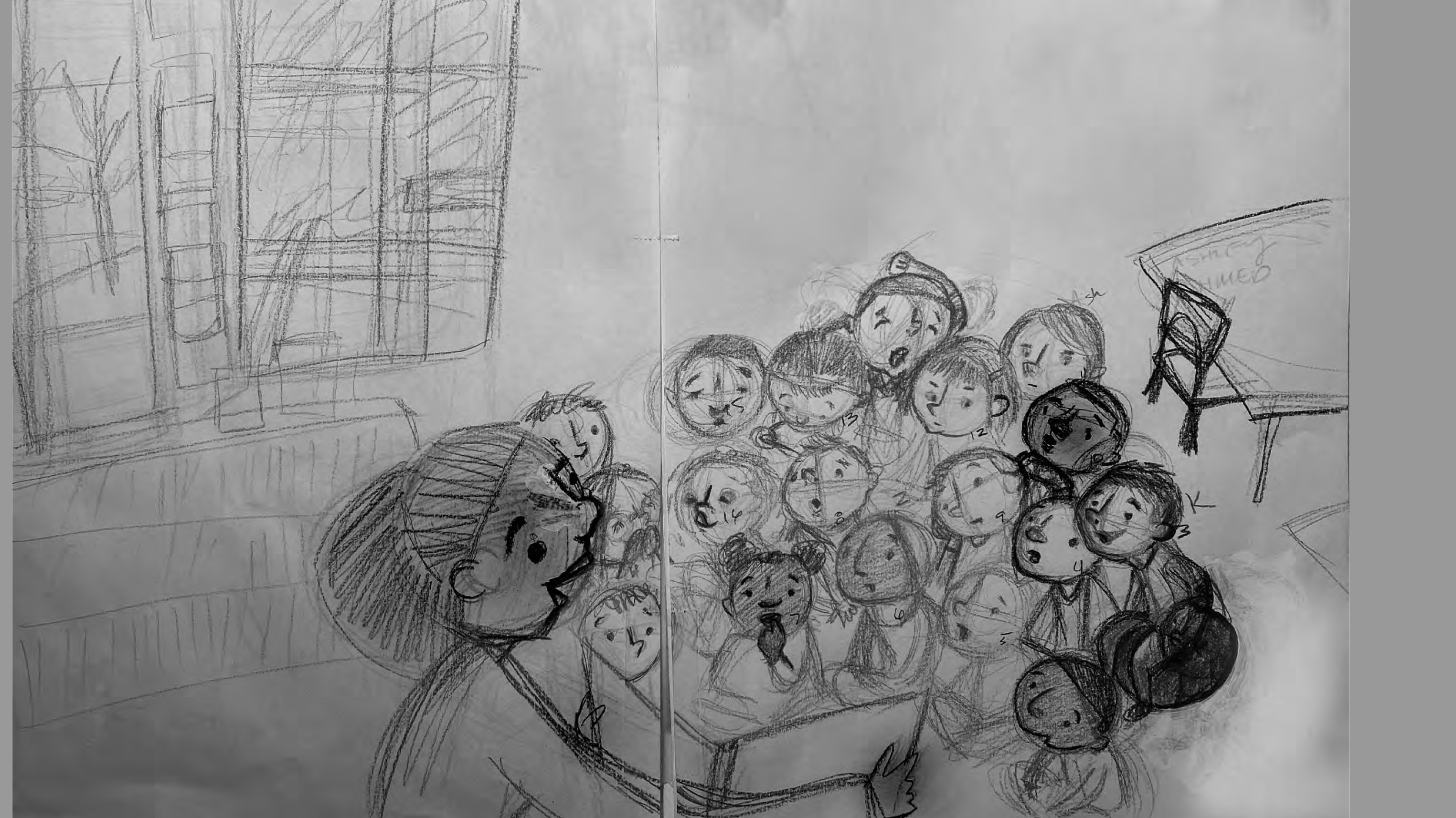 4. You’ve captured the classroom setting and the students’ art in the end papers so beautifully and authentically. When I heard you were a classroom teacher, it all made sense to me. What grade(s) did you teach and did that help you when it came to illustrating this story?