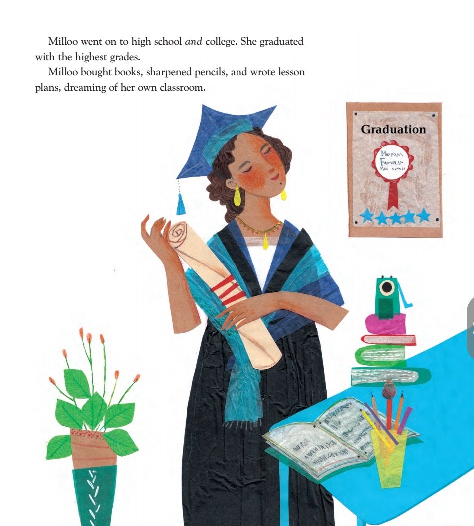 When Milloo reads, her thoughts dance. Milloo courageously dreams of becoming a teacher, but in fifth grade her parents tell her she has had enough school. Milloo is heartbroken but finds a way to achieve her educational goals, graduating high school and college with honors. When she’s married, Milloo’s husband tells her to stay home, but she does not let that stop her.