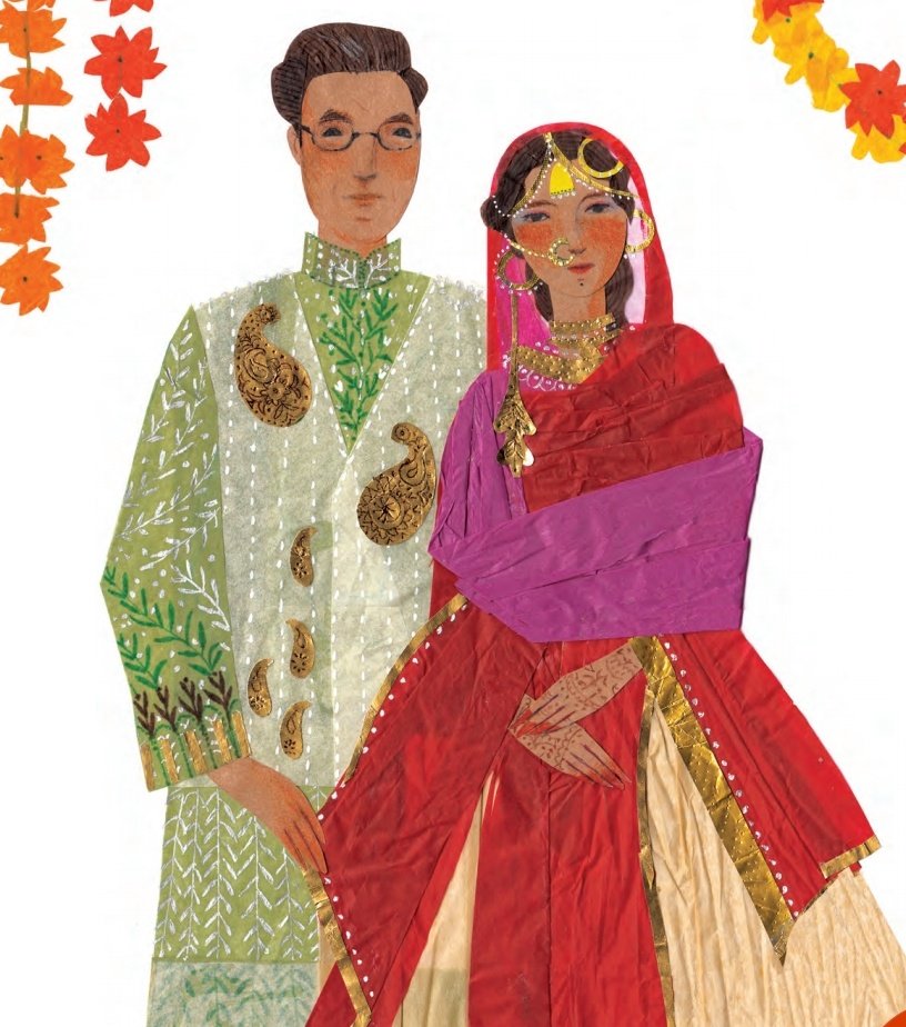Don’t they look like little paper dolls? I love the mehndi details on my grandmother’s hands and the textures of my grandparents clothing on their wedding day!
