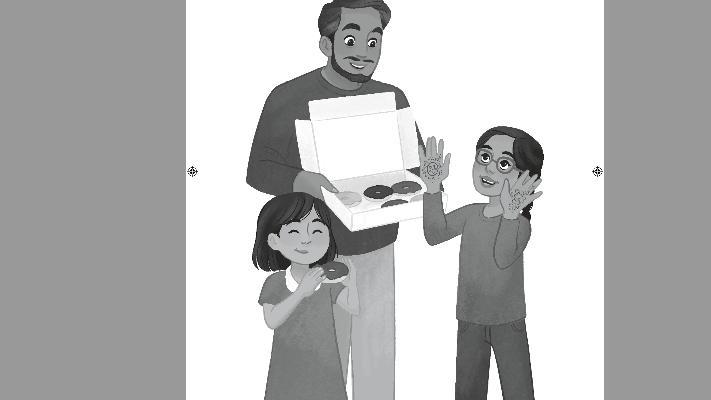 International Day was always one of my most favorite days at school. I loved everyone coming together to share their different cultures and backgrounds through food, clothes, and fun activities. I wanted to capture the magic and excitement that International Day brings to students in the cover illustration. For the interior art, I wanted to aid in helping people connect and really get a good understanding of these wonderful characters and what they bring to the story.