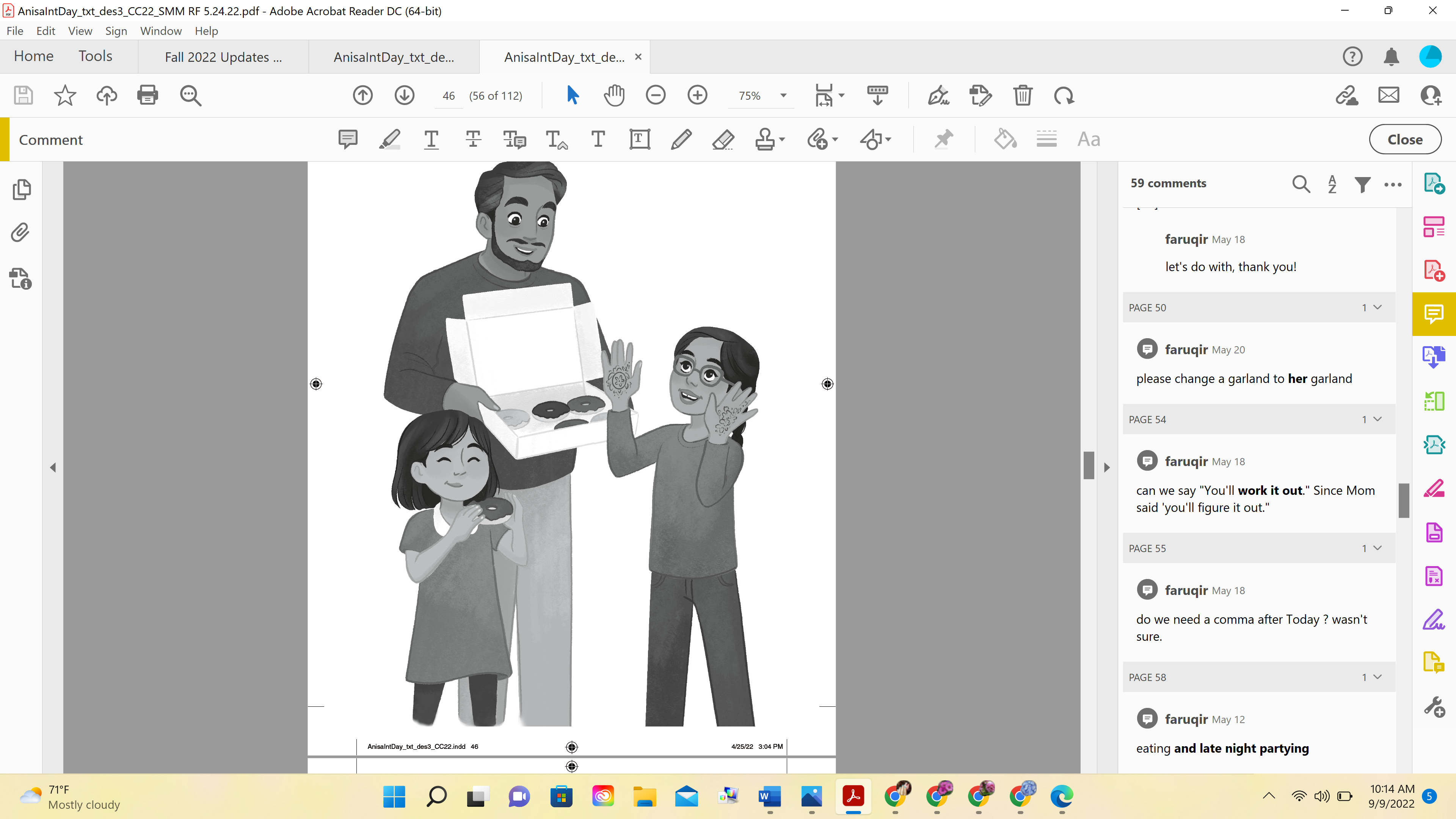 This was actually the first project I’ve worked on where I sent in one singular sketch concept that got approved right away. I usually have a couple of varying ideas but for this book I had a clear vision in wanting to depict “International Day” the way I remembered it as a kid. I wanted the characters to be the main subjects all with clothing and items from their different cultures as well as the colorful bright flags from all different countries shining brightly in the background.