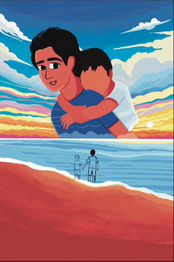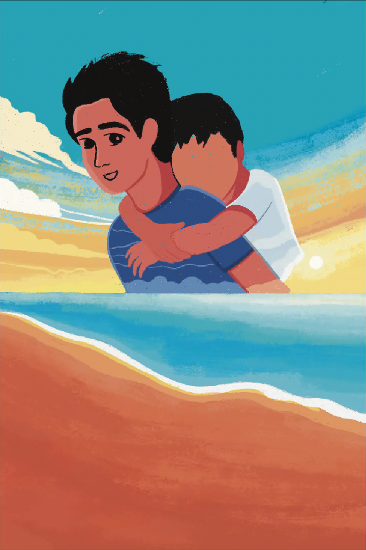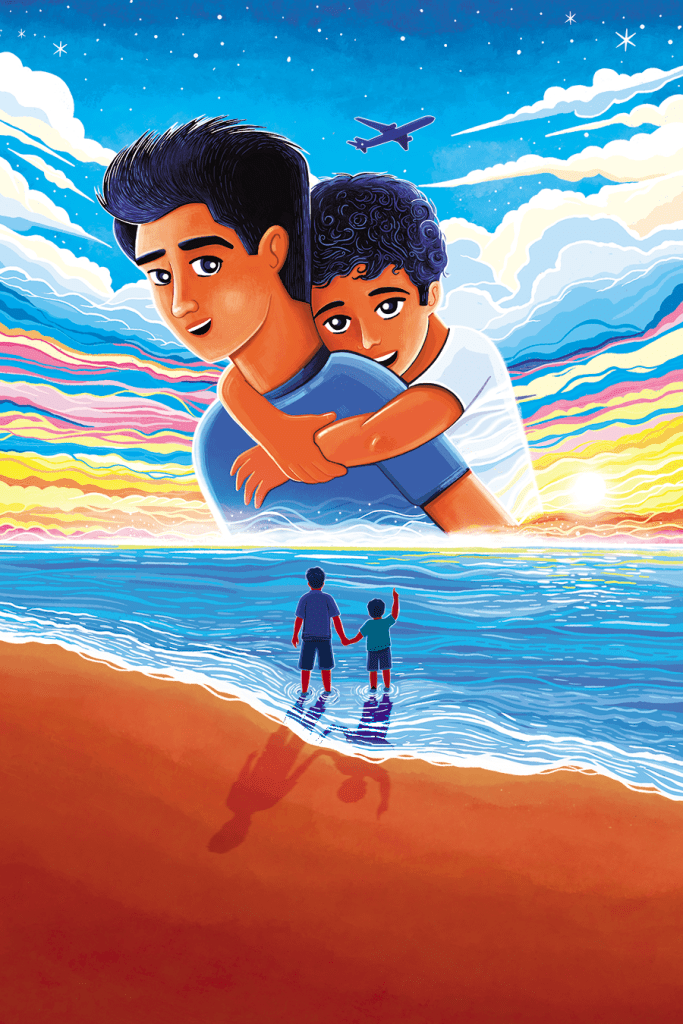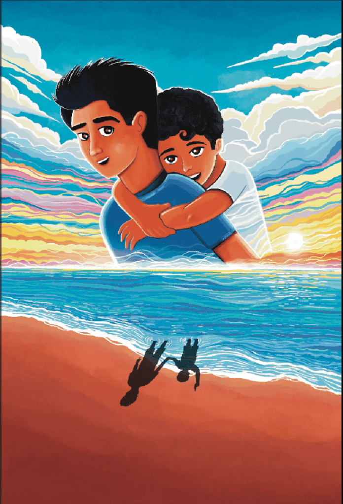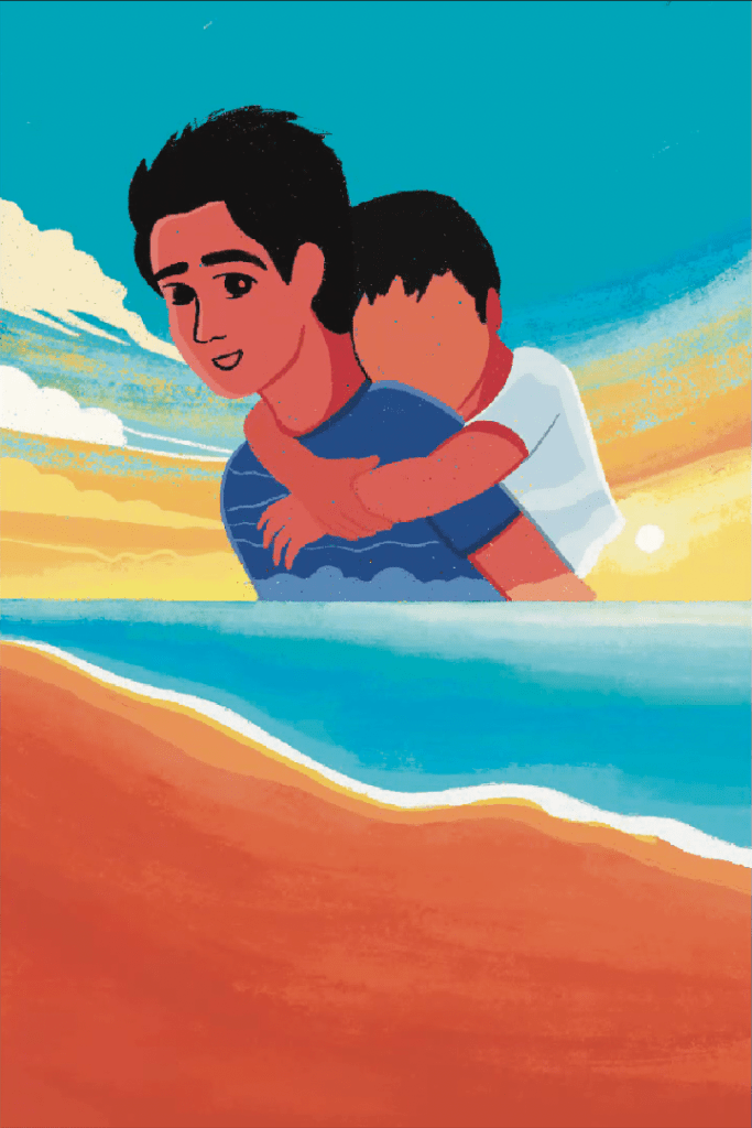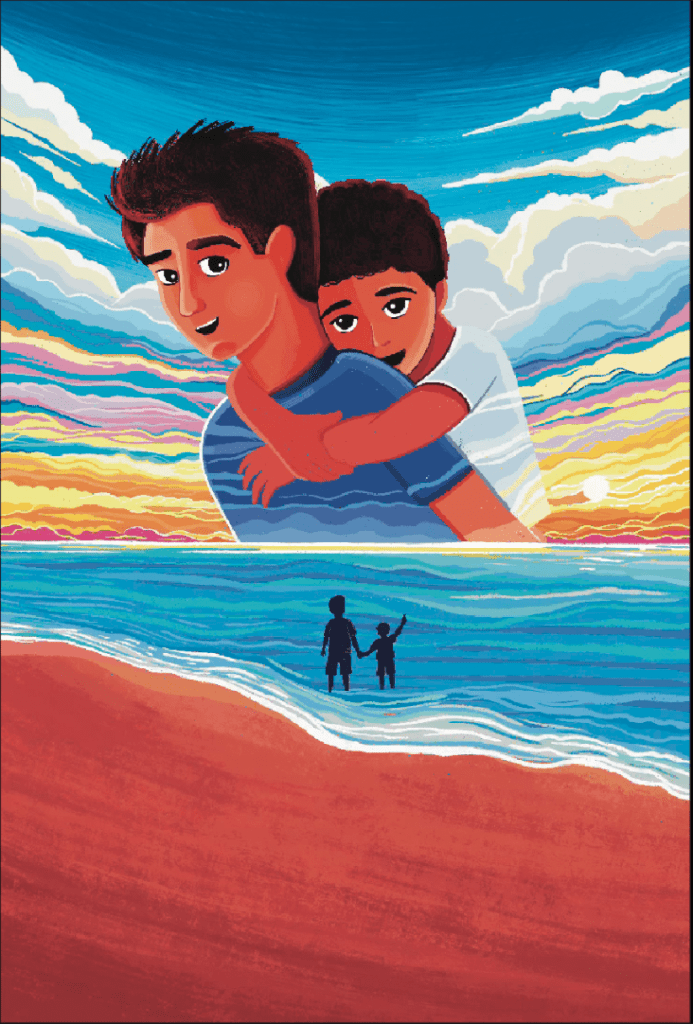 Right from the beginning, my focus was on capturing the key scenes and elements of the story. One of these memorable moments is a beach scene featuring Adnan, who is holding hands with his younger brother Rizwan and pointing up at a passing airplane.