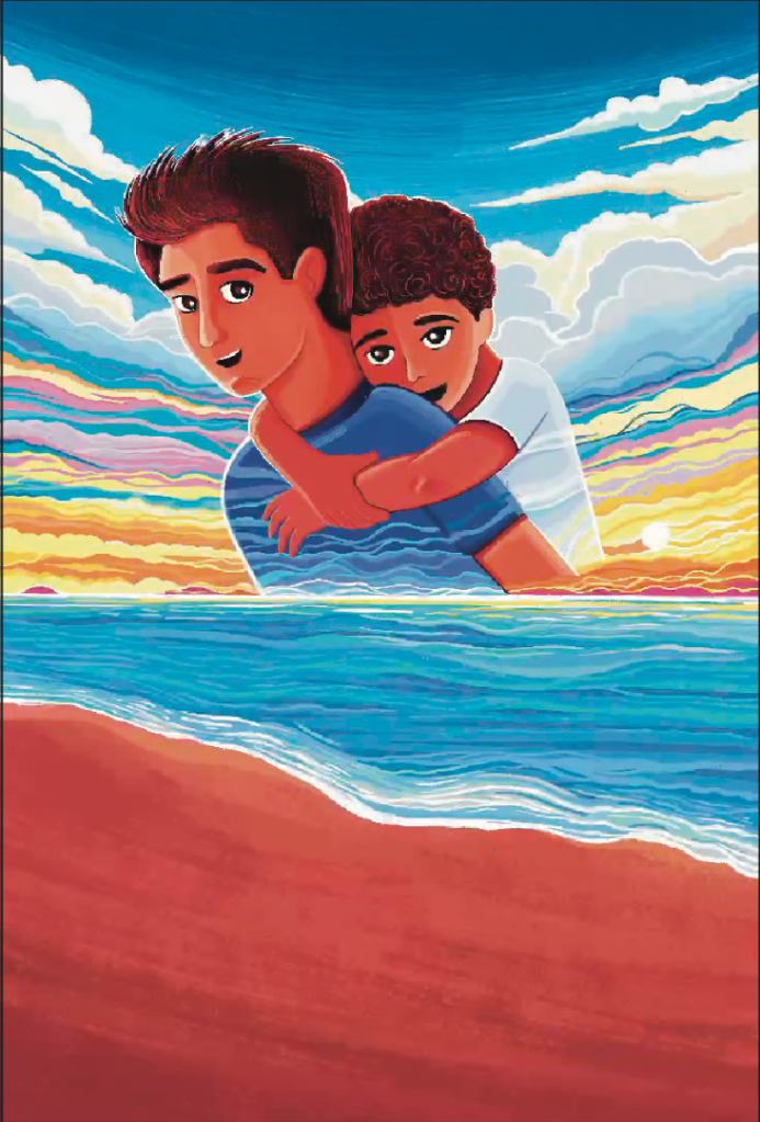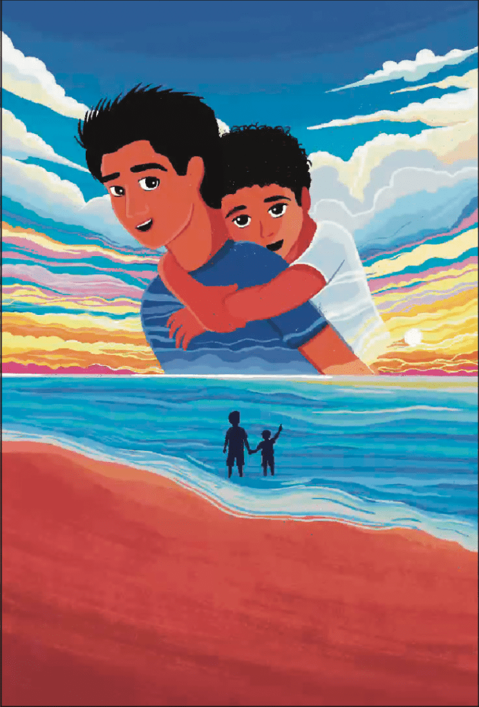 The final cover design is the one that everyone loved. It perfectly captured the heartwarming tone of the book. In this version we have Adnan giving a piggyback ride to Rizwan in the background. Both brothers are laughing and smiling at each other.